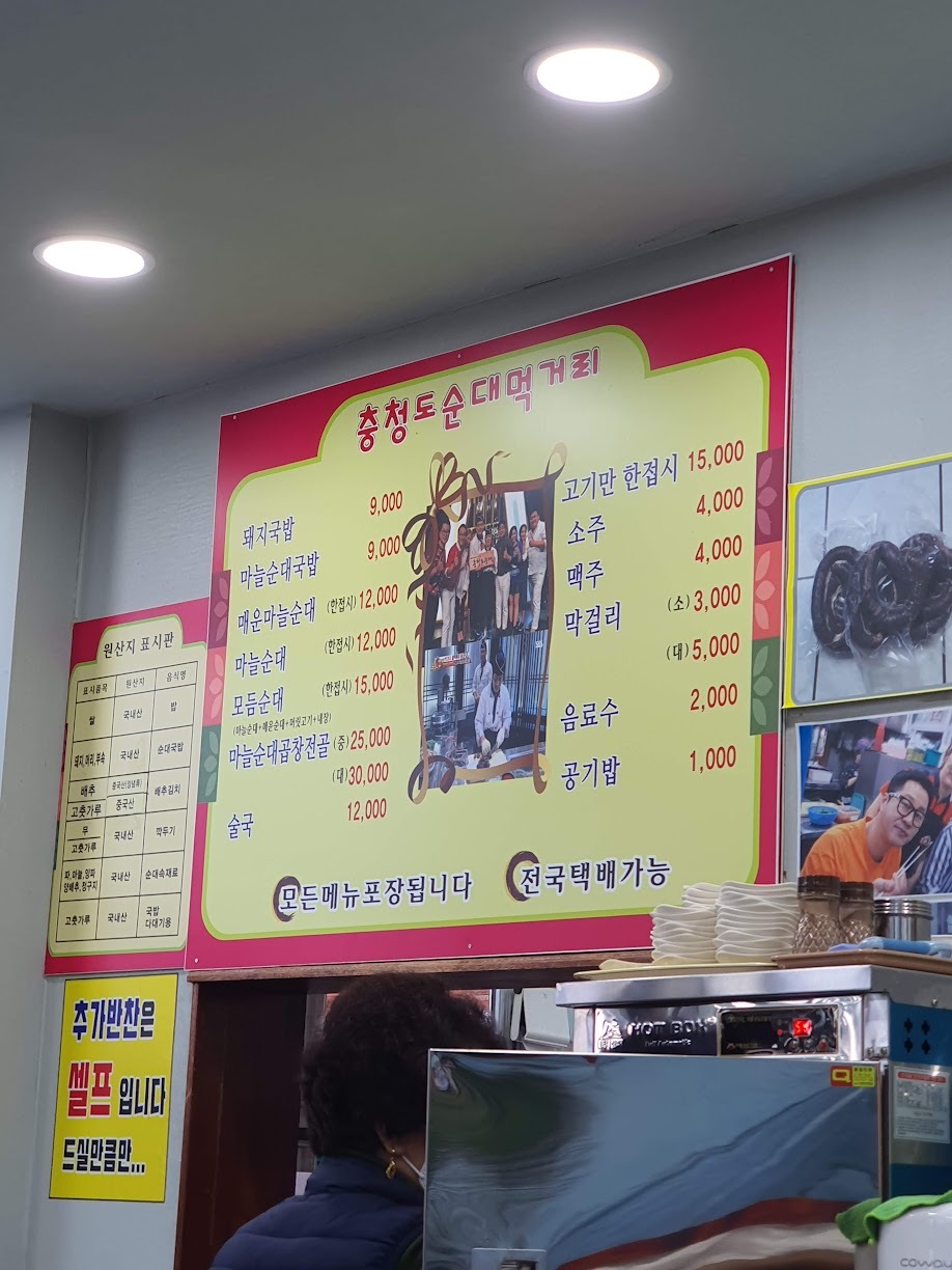 돼지국밥, 마늘순대국밥등이 있는데, 대표메뉴는 마늘순대국밥이다.