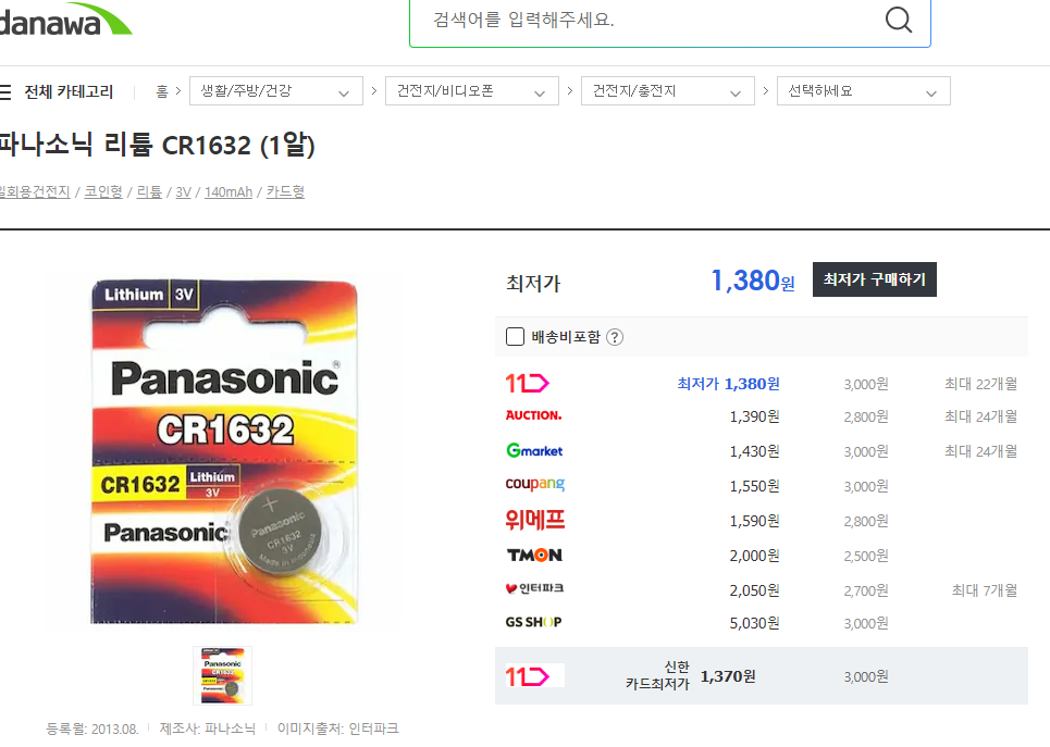 배터리가 CR1632을 사용하는데, 이게 문제는 다이소나 문구점에서는 팔지 않는다.