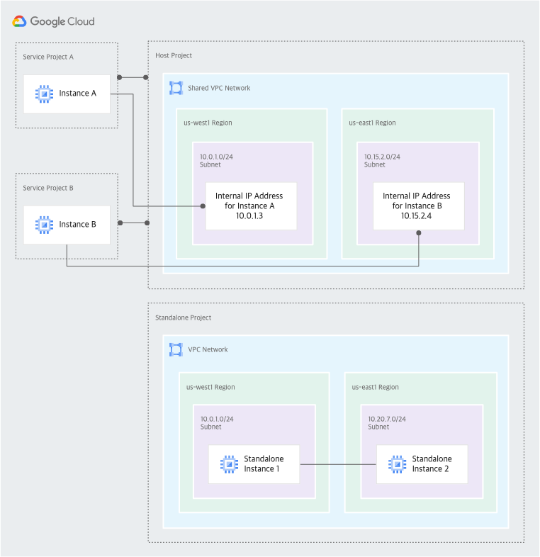 Shared VPC의 큰 특징은 효율과 보안성 Shared VPC 내부의 리소스들은 서로 같은 네트워크 안의 internal IP address로 통신하기 때문에 외부로 통신되지 않기에 효율과 비용을 절감할 수 있음