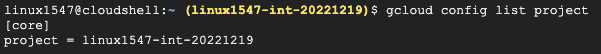 현재 설정된 프로젝트 $ export PROJECT_ID=$(gcloud config get-value project)Your active configuration is: [cloudshell-29945]