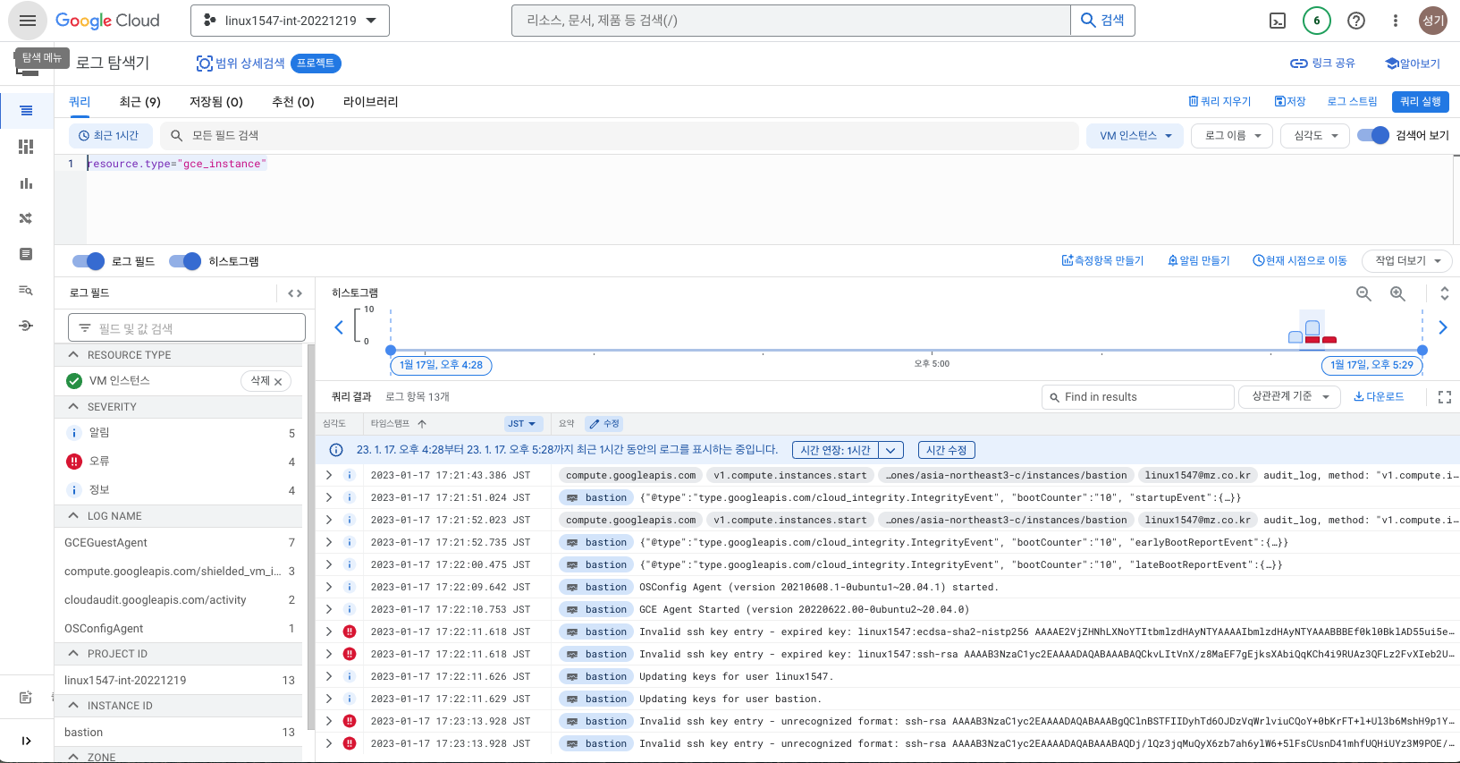 VM 인스턴스 로그