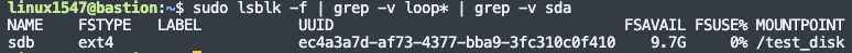 UUID=ec4a3a7d-af73-4377-bba9-3fc310c0f410 /test_disk ext4 discard defaults MOUNT_OPTION 0 2