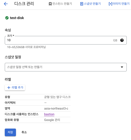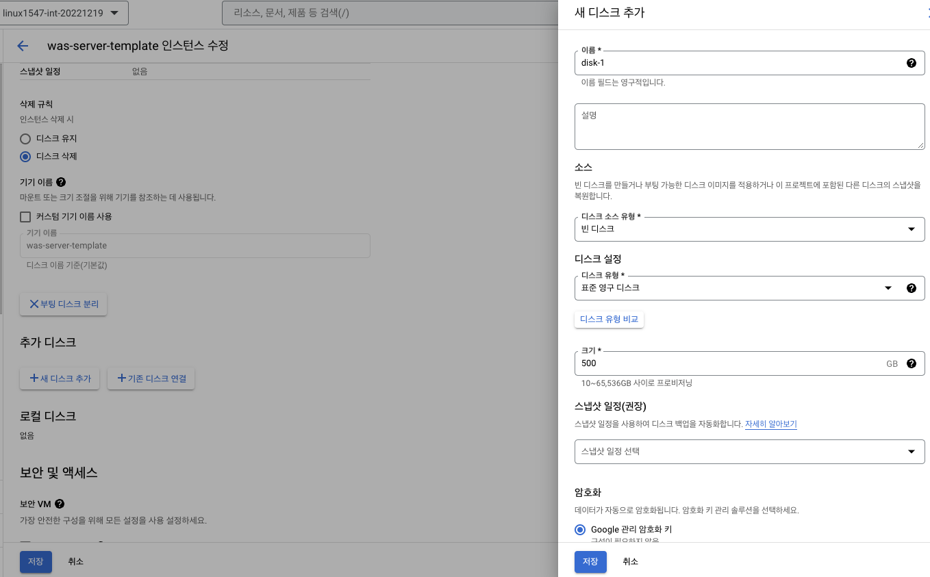 - 해당 스냅샷으로 영구 디스크를 생성 (부팅, 데이터)