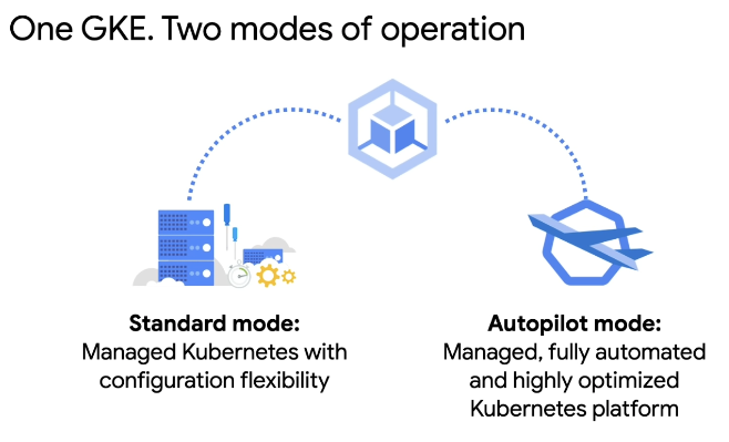 클러스터에 필요한 유연성, 책임, 제어 수준에 따라 GKE에서 사용할 작업 모드가 결정됩니다. GKE 클러스터에는 다음 두 가지 작업 모드 중에서 선택할 수 있습니다.