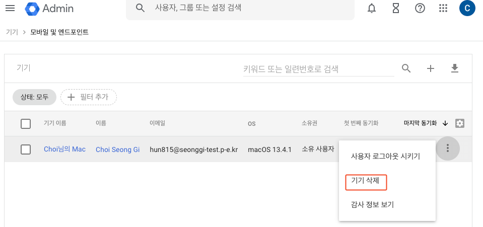 조직을 볼 수 있으며, 오른쪽 탭에서 인증 사용여부를 알 수 있습니다.