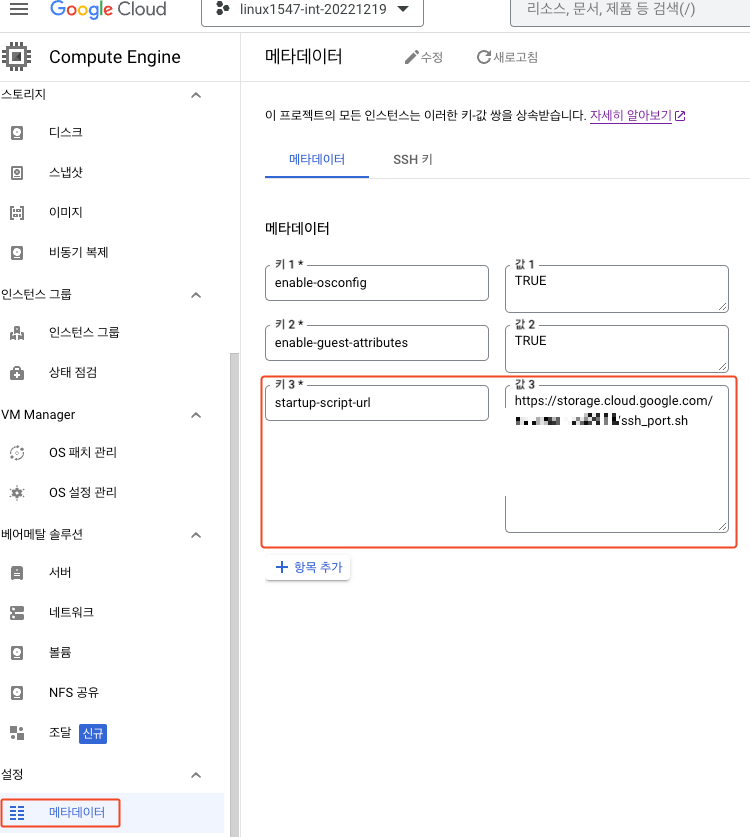 예시 Value : https://storage.cloud.google.com/s/ssh_port.sh