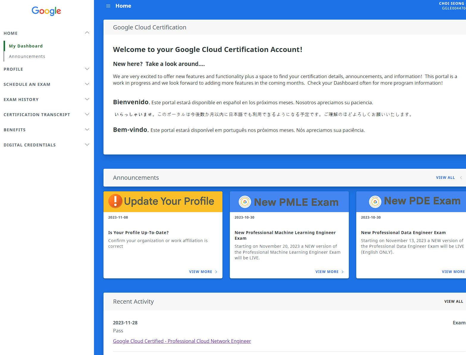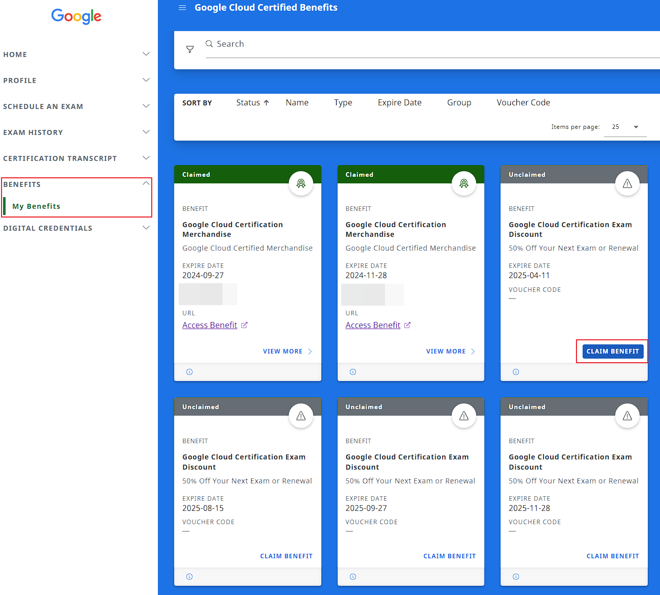 - 전에는 베네핏 즉 "Google CLoud Certification Perks Webstore" 로 접속할 수 있는 링크와 Code를 메일로 바로 주었는데, 이제 주지 않는다.