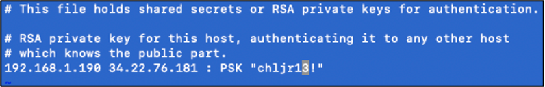 ipsec.secrets파일은 공유키 값을 설정하는 파일로 아래와 같은 형식으로 설정합니다.