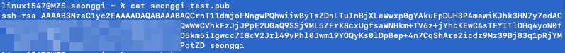 ssh key-gen으로 생성한 파일 중 pub (공개키) 파일을 cat, 메모장으로 열어서 내용을 확인합니다.