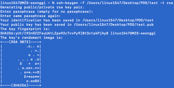 -f : 키값 저장위치 기본설정은 ~/.ssh/ 입니다.