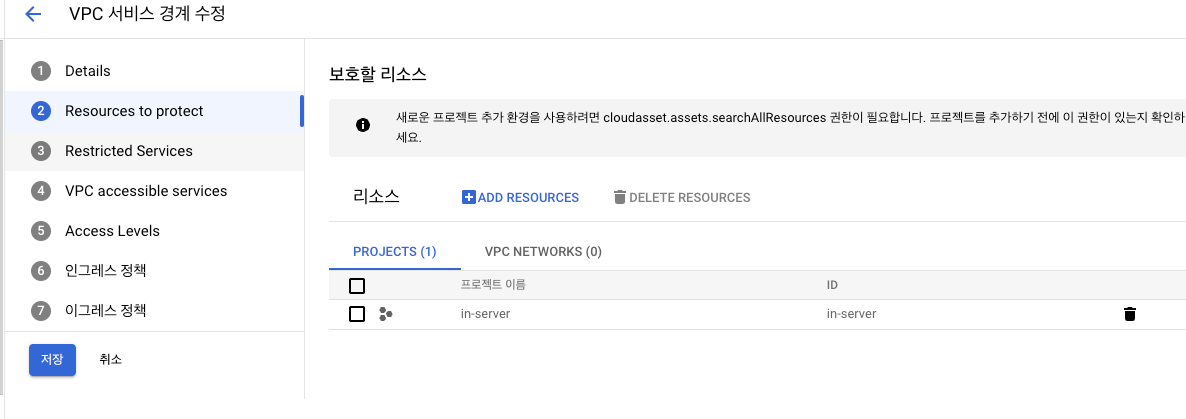 보호할 리소스에서는 위에서 일반 경계를 설정한 각 프로젝트를 선택합니다.