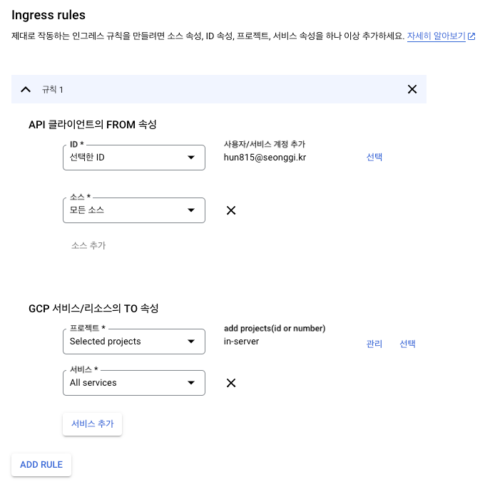 이를 통해 네트워크 통신을 차단, 허용하는 것 외에 GCP 리소스를 내외부적으로 허용, 차단을 할 수 있습니다.