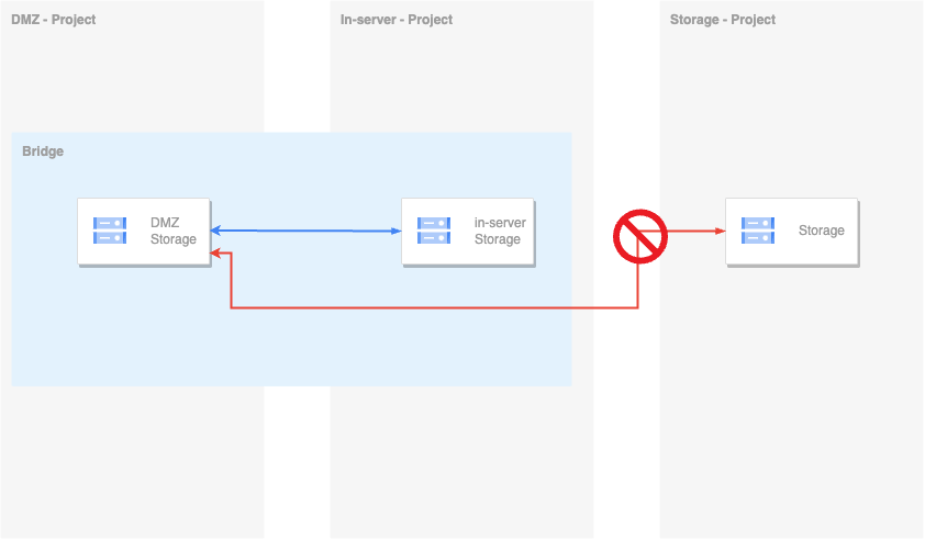 정책적으로 Data Storage Zone Project에 있는 리소스는 접근하지 못하도록 한다는 조건일때 서비스 경계 브리지를 사용하면, 보다 간편하게 연결할 수 있다는 것이 장점으로 생각됩니다.