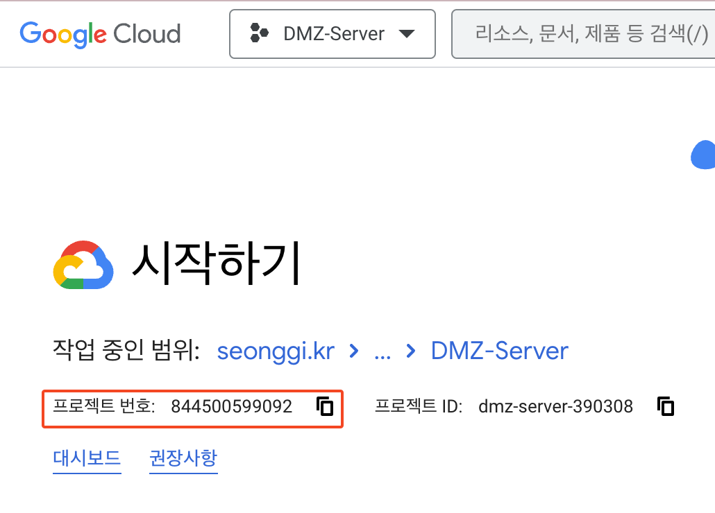projetcts번호는 gcp메인페이지에서 각 프로젝트를 선택하면 확인할 수 있습니다.