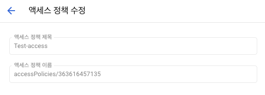 Access Context Manager권한이 있어야 하기에, 관리자 아이디에 해당 권한을 부여하였습니다.