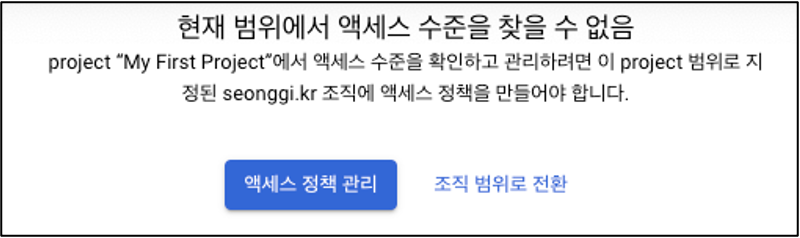 조직, 폴더, 프로젝트를 선택할 수 있는 부분은 GCP Console 왼쪽 상단에 있습니다.