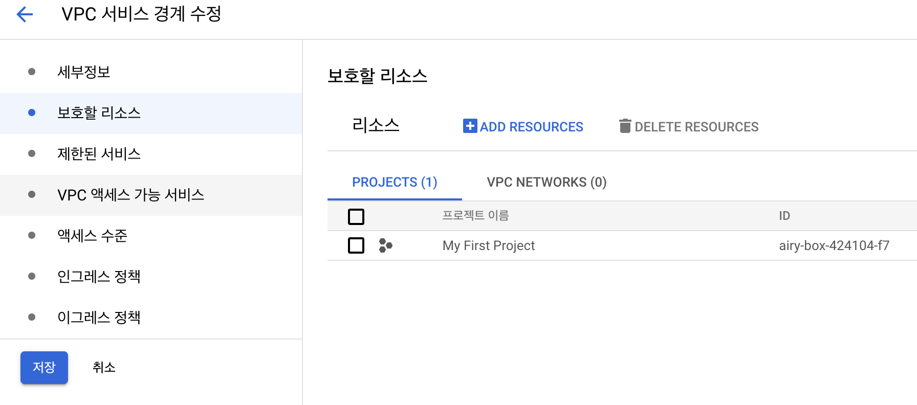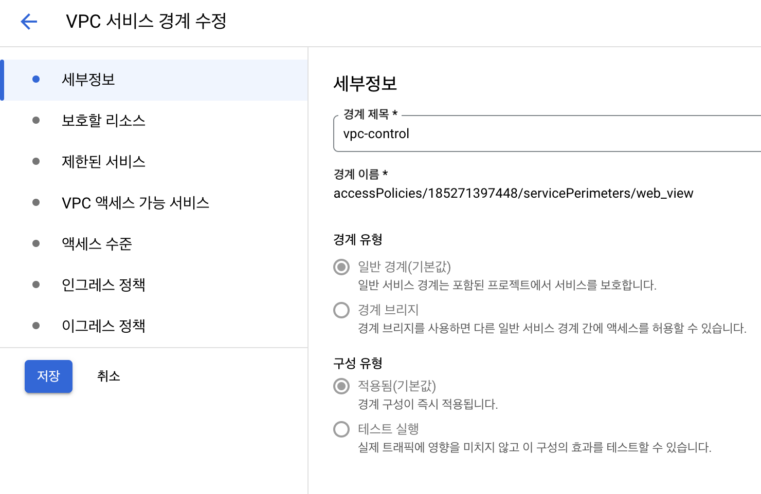 이제 생성을 눌러 VPC 서비스 경계를 생성합니다.