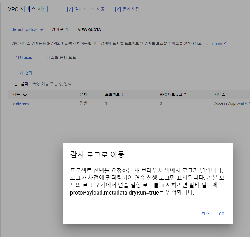 목적 : GCP에서는 VPC서비스 제어라는 보안이 있습니다. 그 중 서비스 경계를 통해 Google Cloud 리소스와 VPC네트워크 격리가 가능합니다. 이를 통해 네트워크 통신을 차단, 허용하는 것 외에 GCP 리소