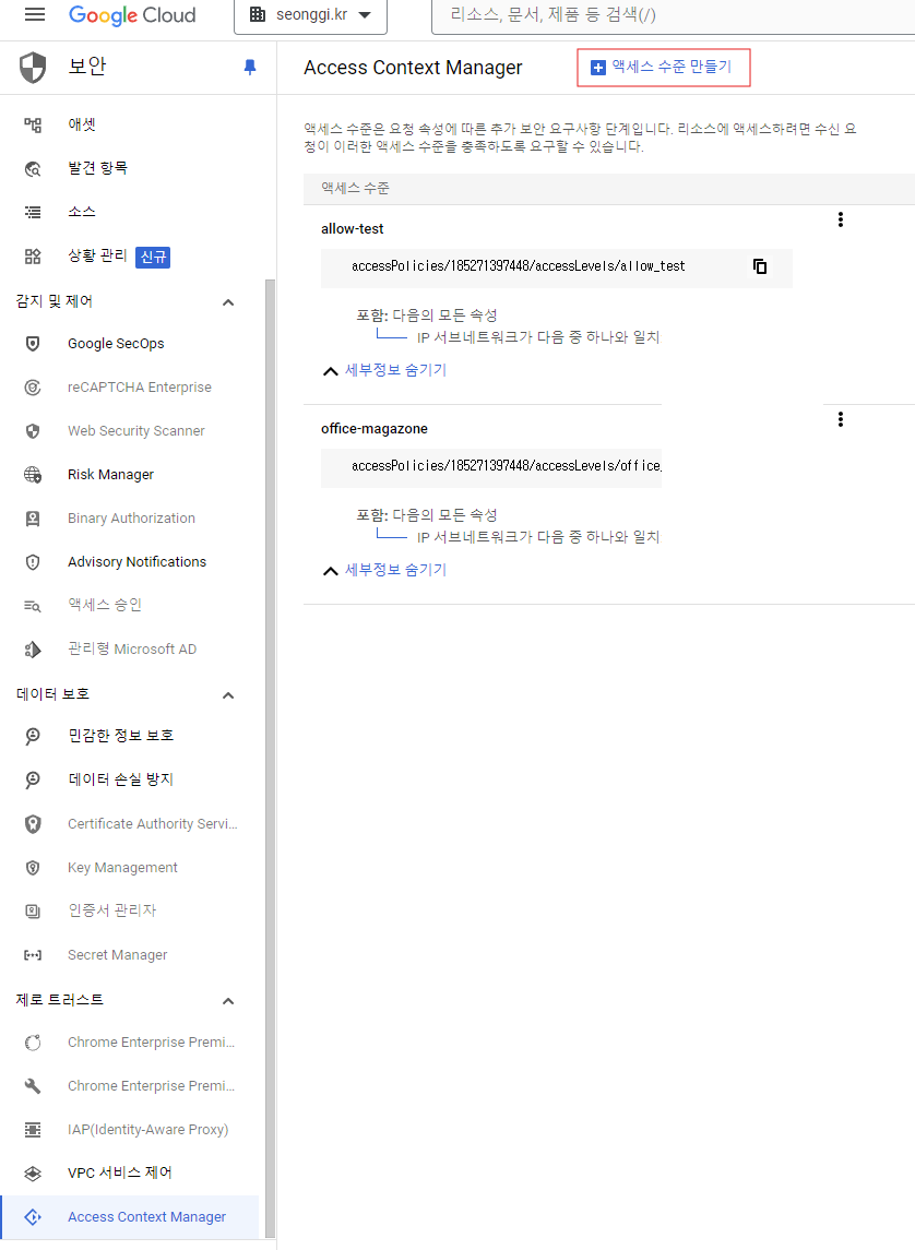 동일하게 사무실의 IP를 추가하여 “Access Context”를 하나 더 생성합니다.