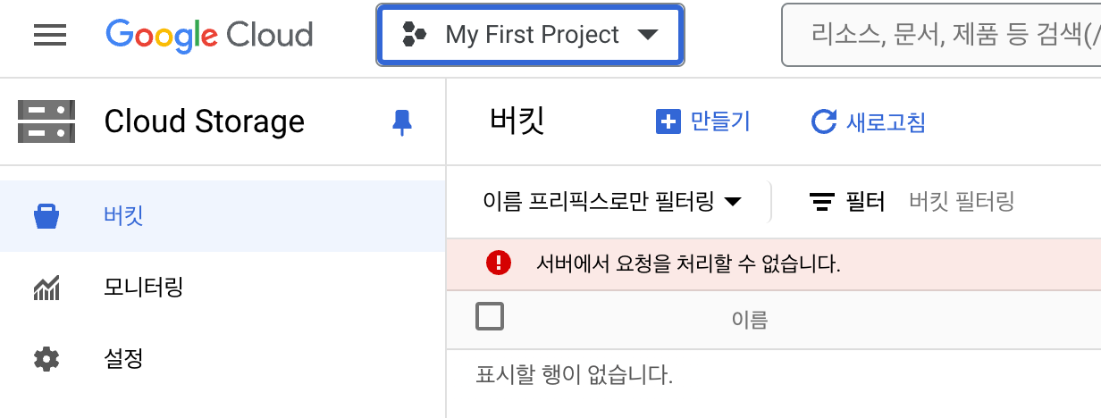 허가된 서비스인 “Cloud Storage”를 선택하면 정상적으로 버킷이 보입니다.