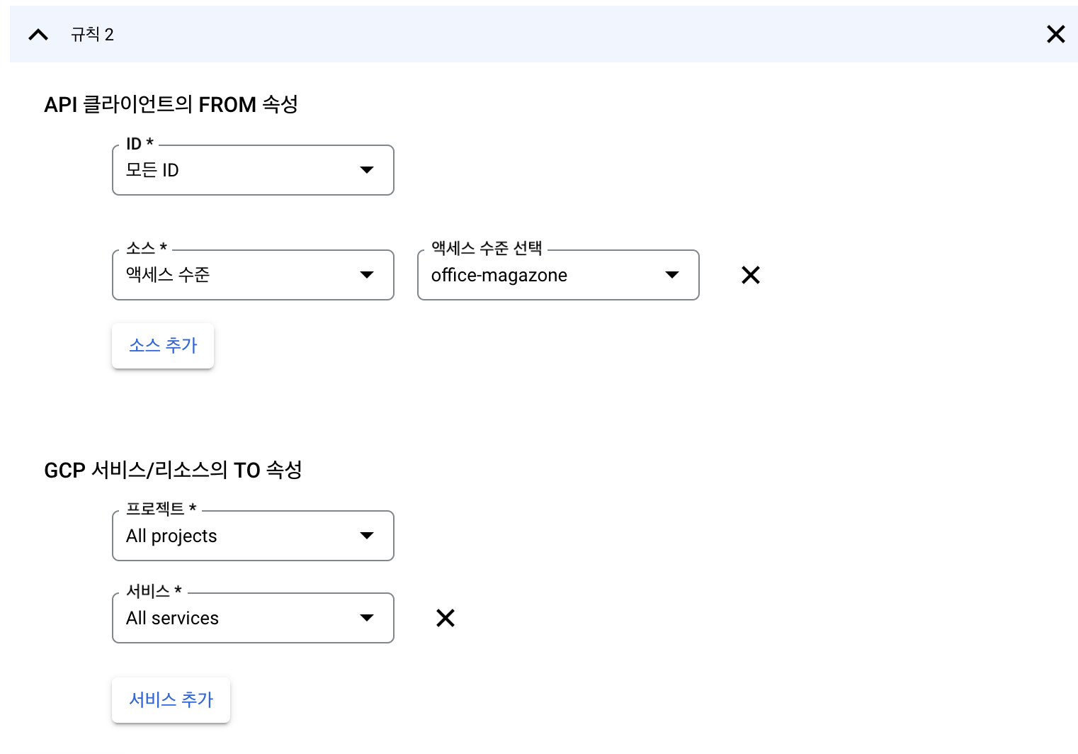 - 규칙2 : 사무실에서는 모든 GCP 리소스 사용가능
