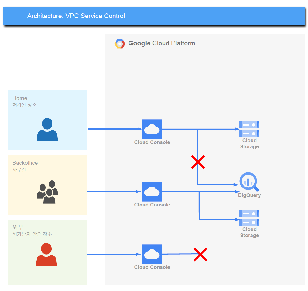 본 문서에서는 예제 시나리오를 가지고 허가된 장소와 사용자만 GCP서비스를 사용하는 방안을 기술하겠습니다.