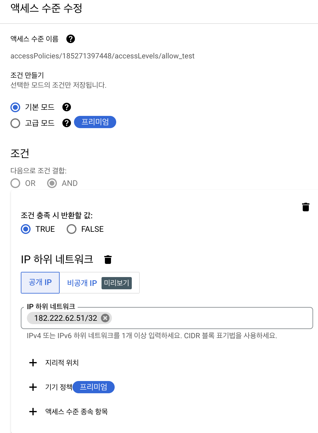 동일하게 사무실의 IP를 추가하여 “Access Context”를 하나 더 생성합니다.