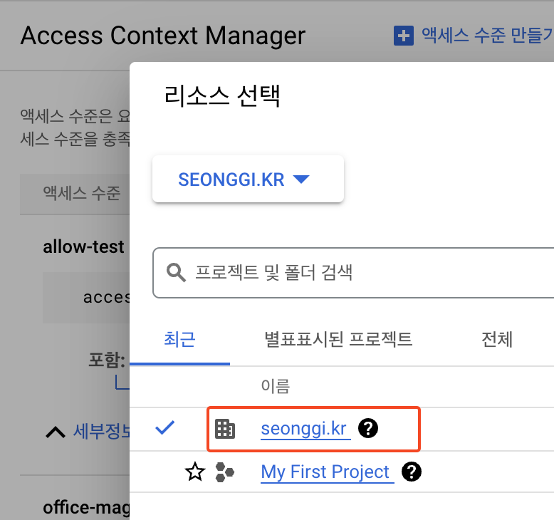 사무실에서의 모든 사용자는 사용이 가능하도록 “Access Context Manager”를 설정