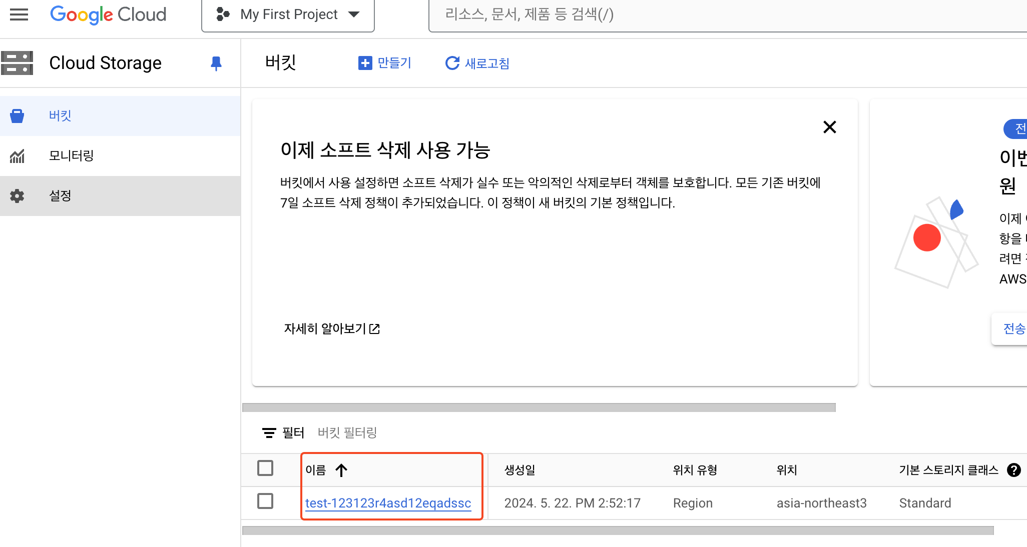 허가된 서비스인 “Cloud Storage”를 선택하면 정상적으로 버킷이 보입니다.