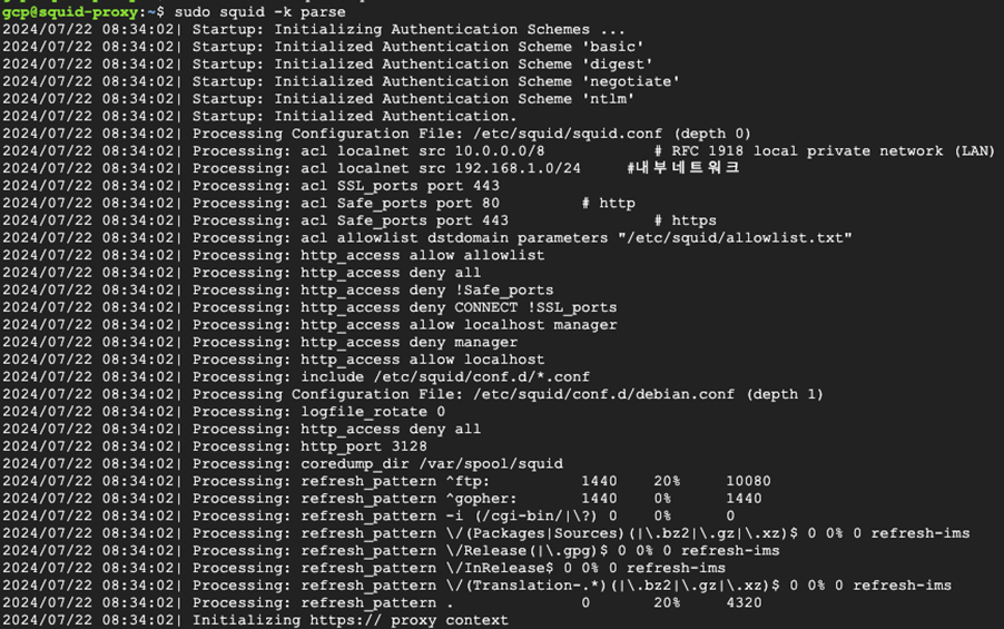 | sudo squid -k parse | /etc/squid/squid.conf 이 올바른지 분석, 점검 툴 |