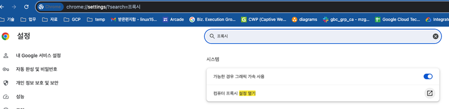 WebBrower -> 설정 -> 프록시 -> 프록시 설정 열기