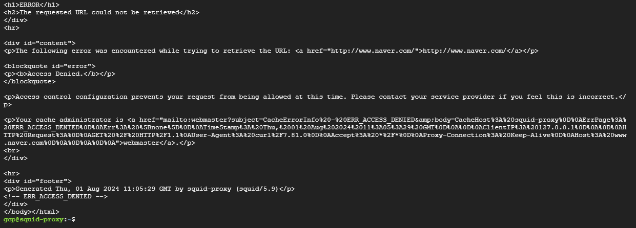| sudo systemctl restart squid | Squid 프로그램 재시동 |