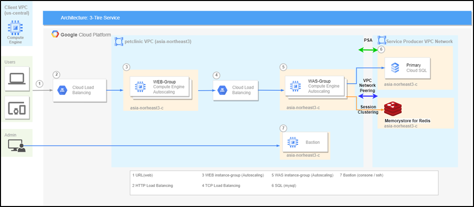 | Client | Compute Engine | e2-medium( vCPU 2, 4GB) | us-central 별도VPC |
