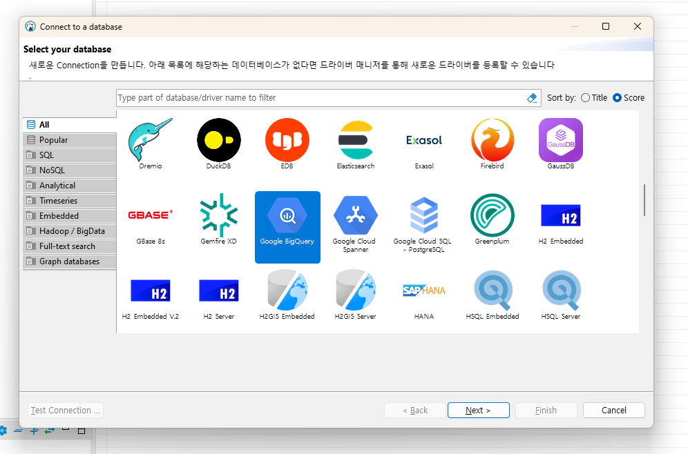 연결시 DBTool을 이용하여 Bigquery 사용가능