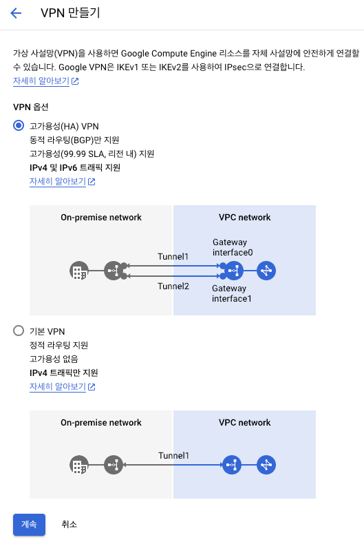 Console : 네트워크 연결 -> VPN -> 고가용성(HA) VPN 선택