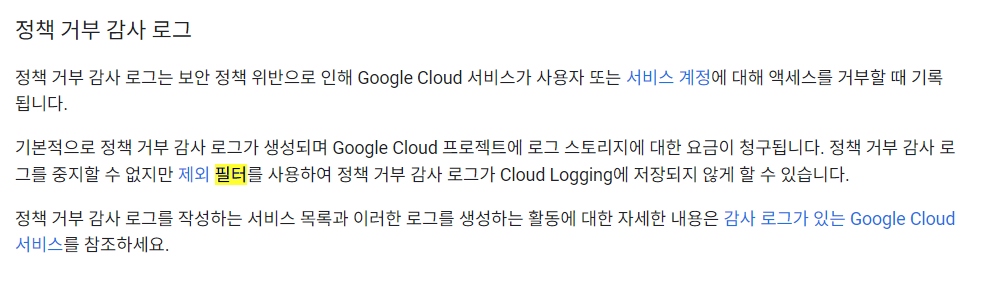 Google Logging 샘플 쿼리 : https://cloud.google.com/logging/docs/view/query-library?hl=ko