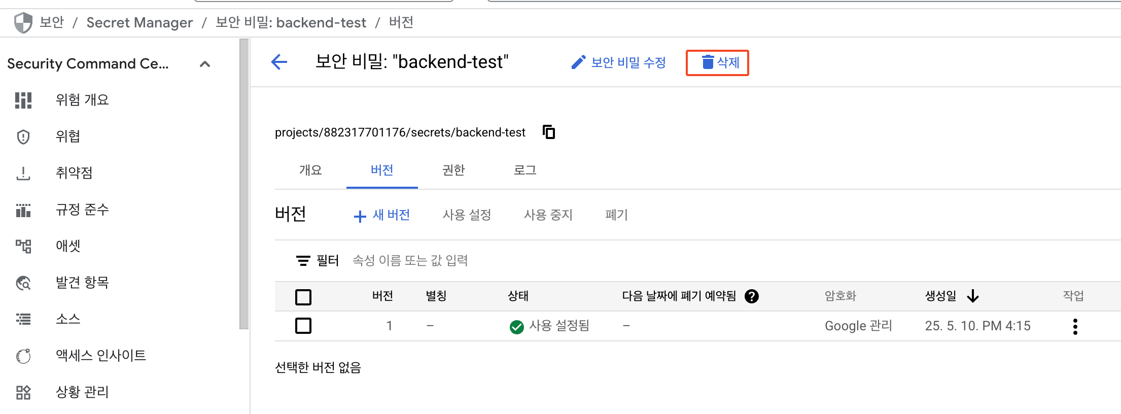 echo "삭제 시도 중: $SECRET_NAME (프로젝트: $PROJECT_ID)"