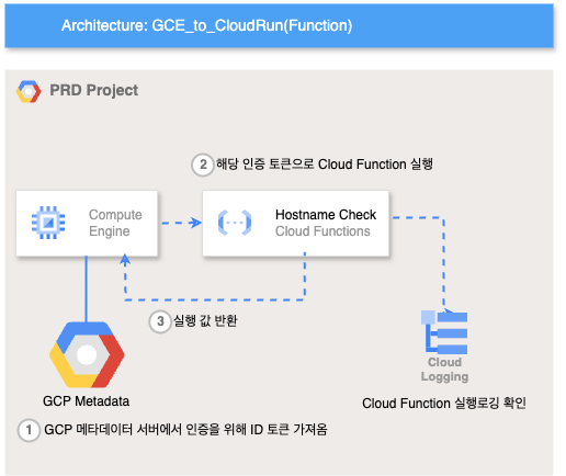 이번 테스트에서는 GCE 인스턴스에서 Cloud Run(Function)을 호출하는 과정을 검증합니다.