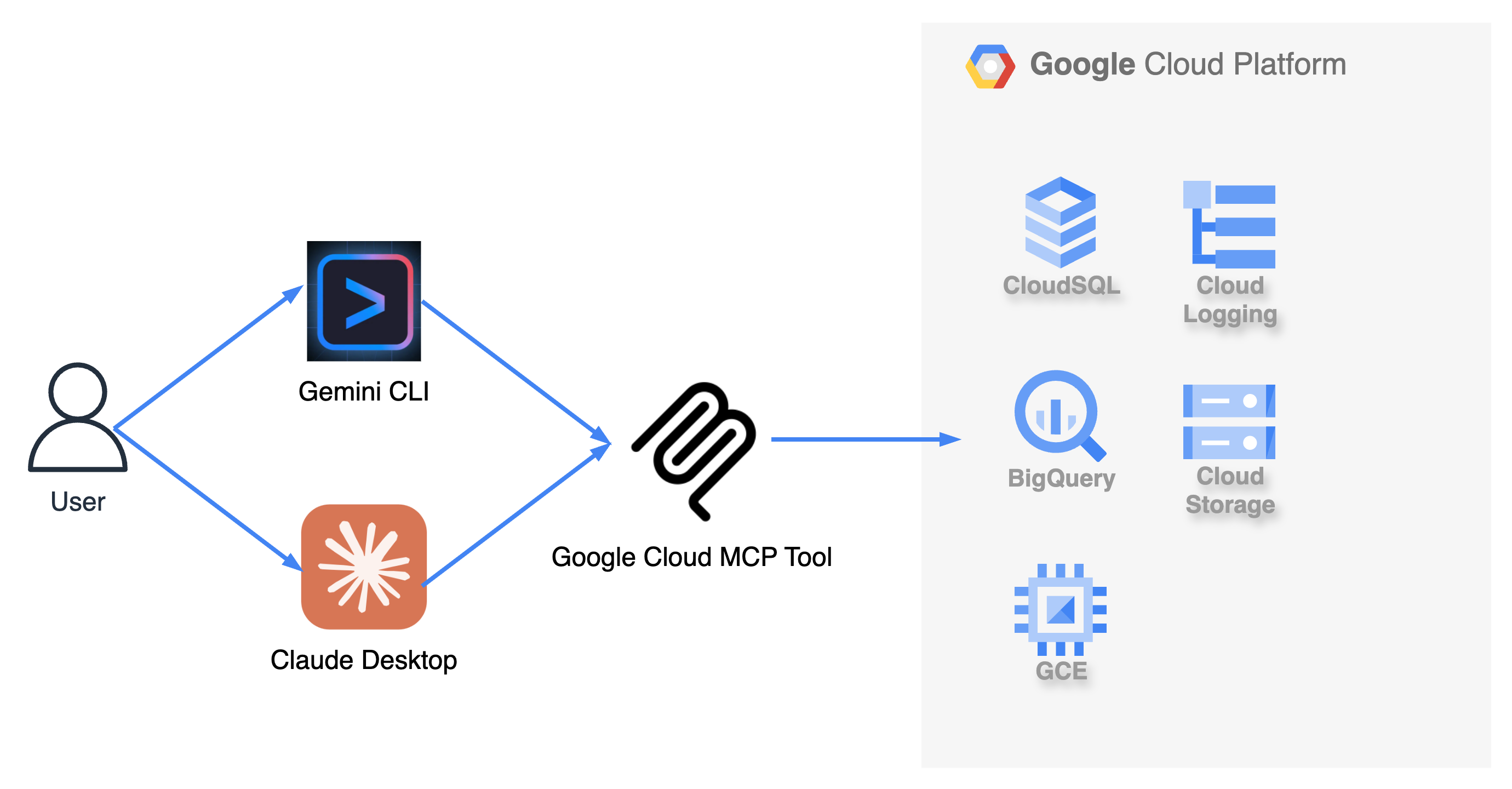목적 및 배경: gemini Cli와 Google Cloud MCP Server를 연결하여 복잡한 gcloud CLI 명령어 대신, 일상적인 대화(자연어)를 통해 Google Cloud Platform(GCP) 리소스를 생성, 조회, 수정, 삭제하는 시스템을 구축하는 것을 목표로합니다.