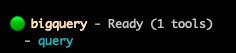 MCP서버의 리스트가 확인되며, 어떤 기능을 사용할 수 있는지도 확인할 수 있습니다. 이번에 사용한 MCP는 Bigquery 전용만 가능합니다