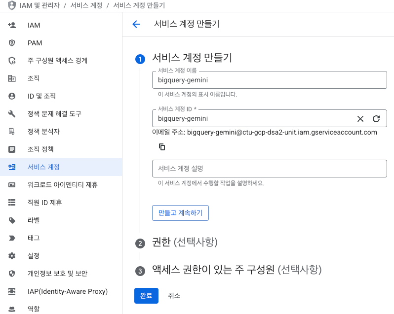 SA키 사용이 아닌 사용자 계정으로 사용할 경우에는 “gcloud auth application-default login” 명령어를 통해 GCP 인증 하여 프로젝트로 접근 가능하도록 합니다.