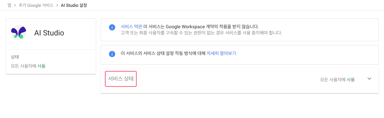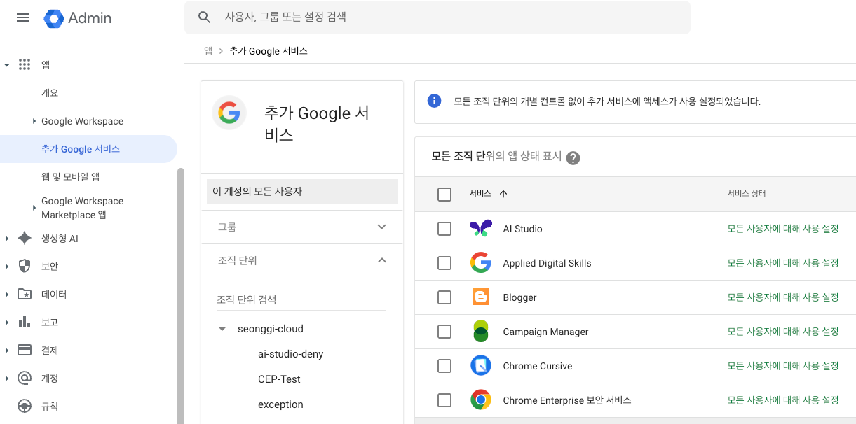이에 따라, GWS 및 Cloud ID에 등록된 사용자 중에서 AI Studio 사용을 선별적으로 허용하거나 거부할 수 있도록 하는 방안을 작성하였습니다.