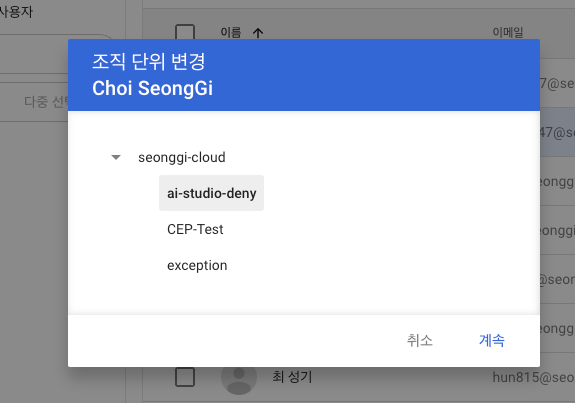 AI Studio를 제한할 사용자들을 해당 조직으로 이동합니다.