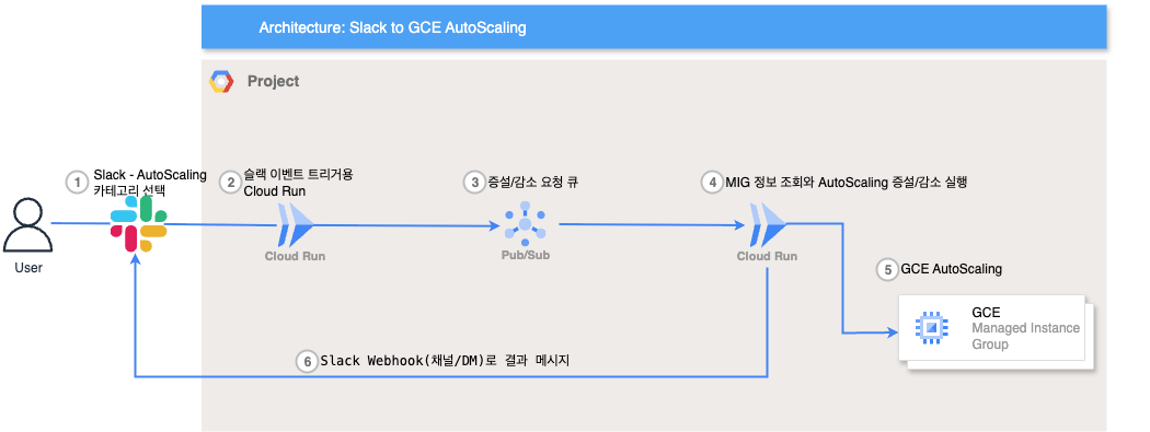 배경 : 운영자들이 수동으로 GCP 콘솔/명령어 대신, 더 친숙한 Slack 환경에서 증설·감소를 할 수 있도록 함