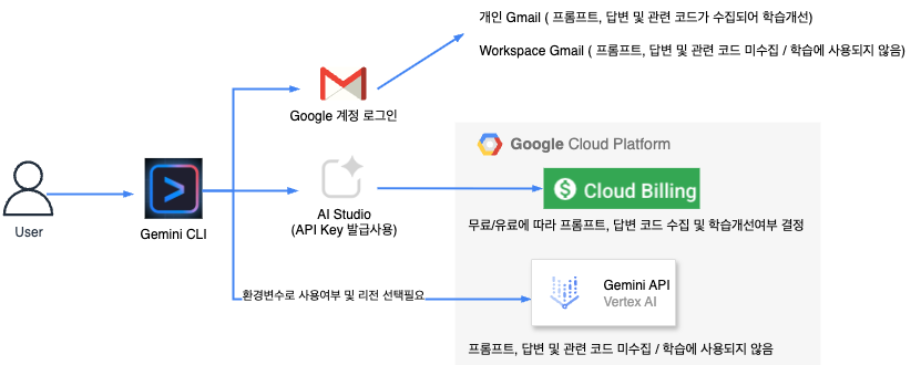 Gemini CLI는 Claude, Amazon Q와 다르게 다양한 인증방법과 실제 사용하는 LLM엔진이 다릅니다.