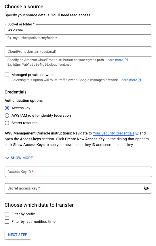 소스에 대한 액세스 구성: Amazon S3 | Cloud Storage Transfer Service Documentation | Google Cloud