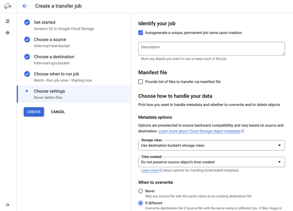 다만 환경에 따라 S3에서 주기적인 일정으로 GCS측으로 복사하는 환경도 있을 수 있습니다. 고객의 환경에 맞도록 설정합니다.