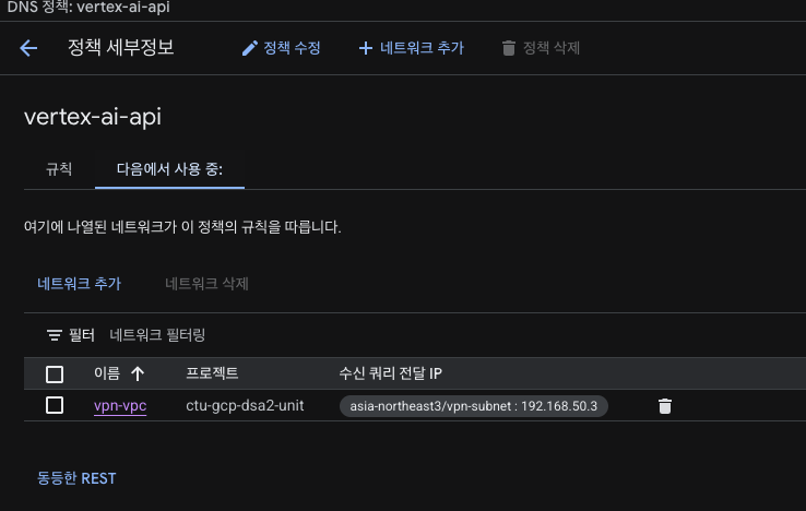 1. *.googleapis.com 에 대해 모두 GCP DNS로 조건부 전달자로 사용