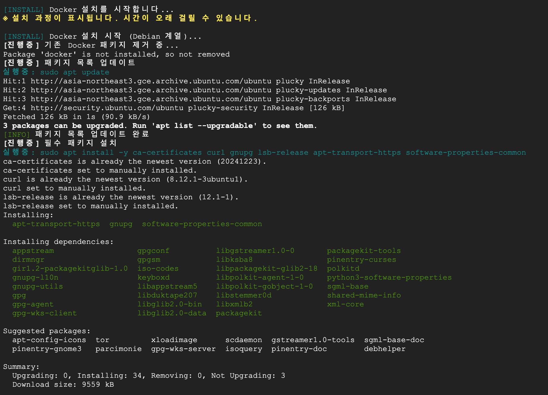 echo "Docker가 없으면 자동으로 설치할 수 있습니다."