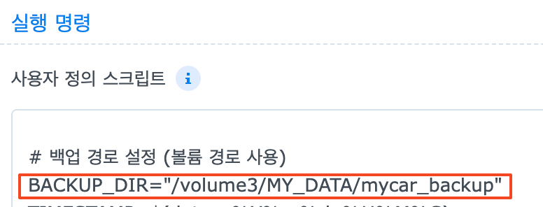 백업 경로 역시 본인의 시놀로지 환경에 맞추어서 BACKUP_DIR에 경로를 지정해줍니다.